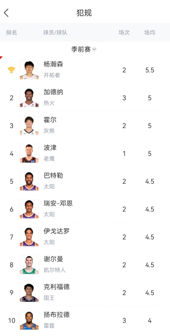 2025-10-11 18:38:26嘿嘿嘿!杨瀚森季前赛个人场均5.5个犯规 高居联盟第1!